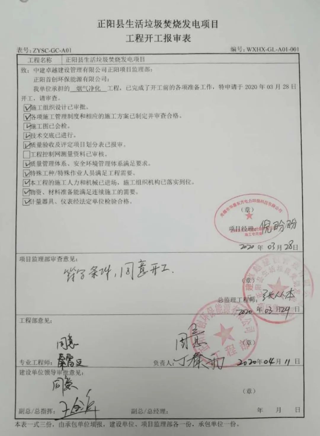 華星東方承建的河南省駐馬店市正陽縣生活垃圾焚燒發電項目煙氣凈化工程開工建設